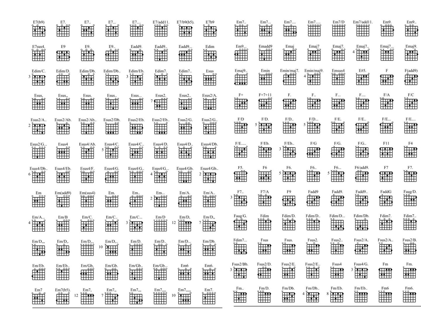 Diminished chords have a unique and tense sound. They are represented by the chord name followed by the symbol "dim" (e.g., Bdim, Edim). Here are some diminished chord graphics: