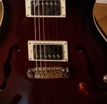 The PRS Hollowbody Guitar is equipped with a pair of humbuckers, which deliver a powerful and dynamic sound. These pickups are meticulously designed to capture every nuance of your playing, whether you're playing clean or pushing the amp into overdrive. The guitar's electronics are top-notch, ensuring optimal signal transfer and tonal control.